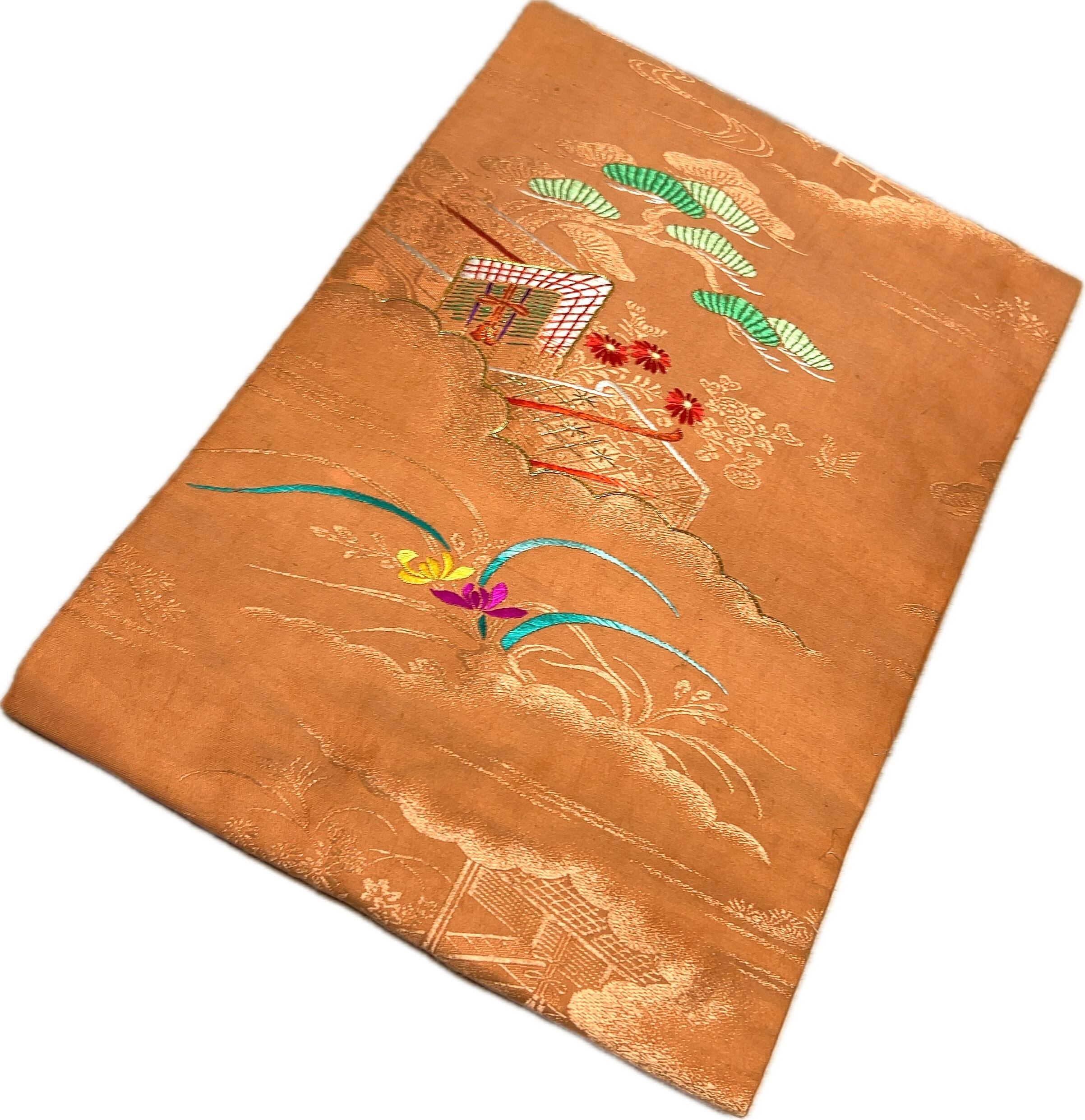 【L1210】名古屋帯 名古屋仕立て 茶オレンジ 350cm 小紋などのふだん着物に