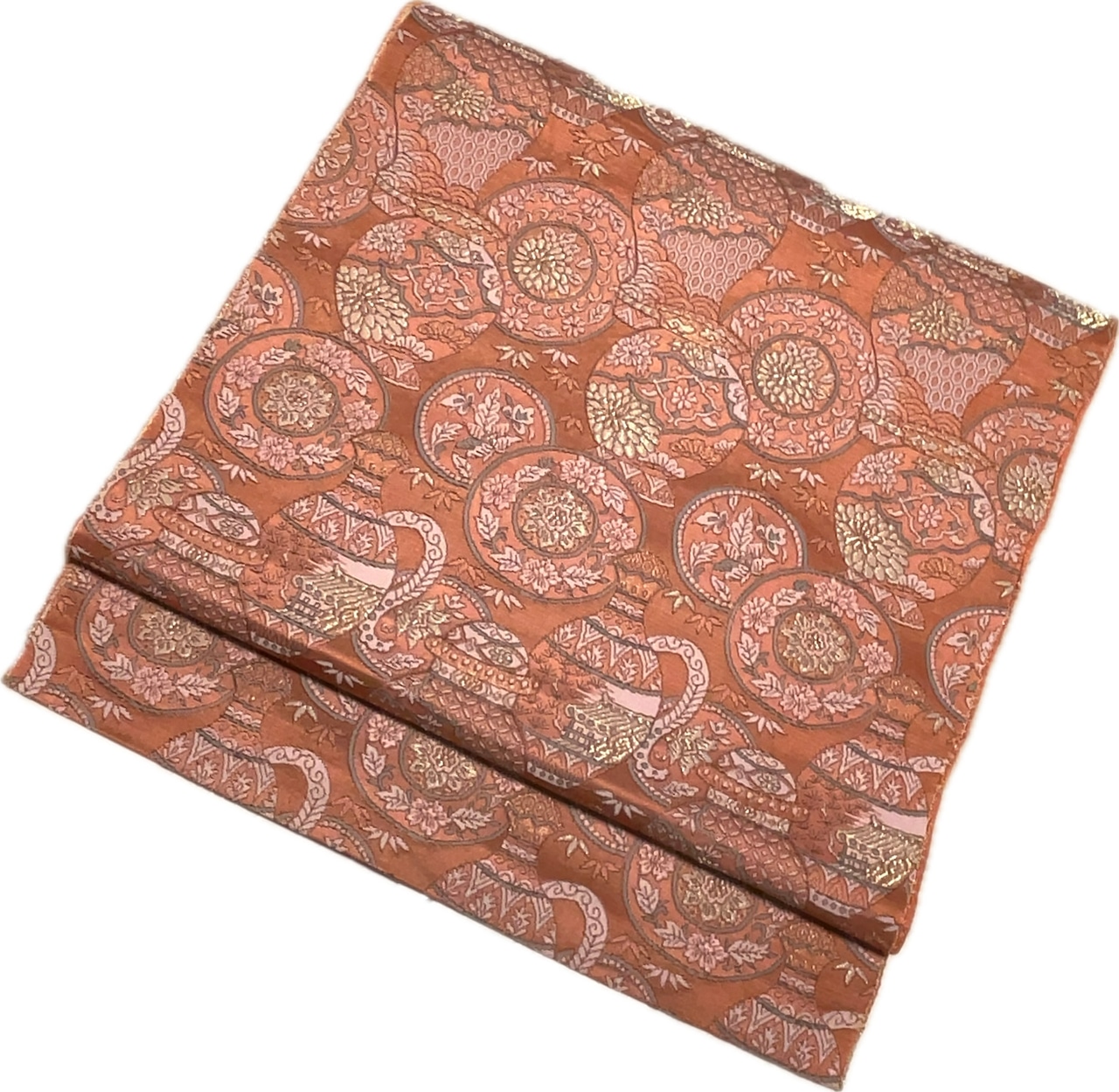 ZZ1203 名古屋帯 名古屋仕立て 茶ピンク 342cm ~初心者応援価格!!