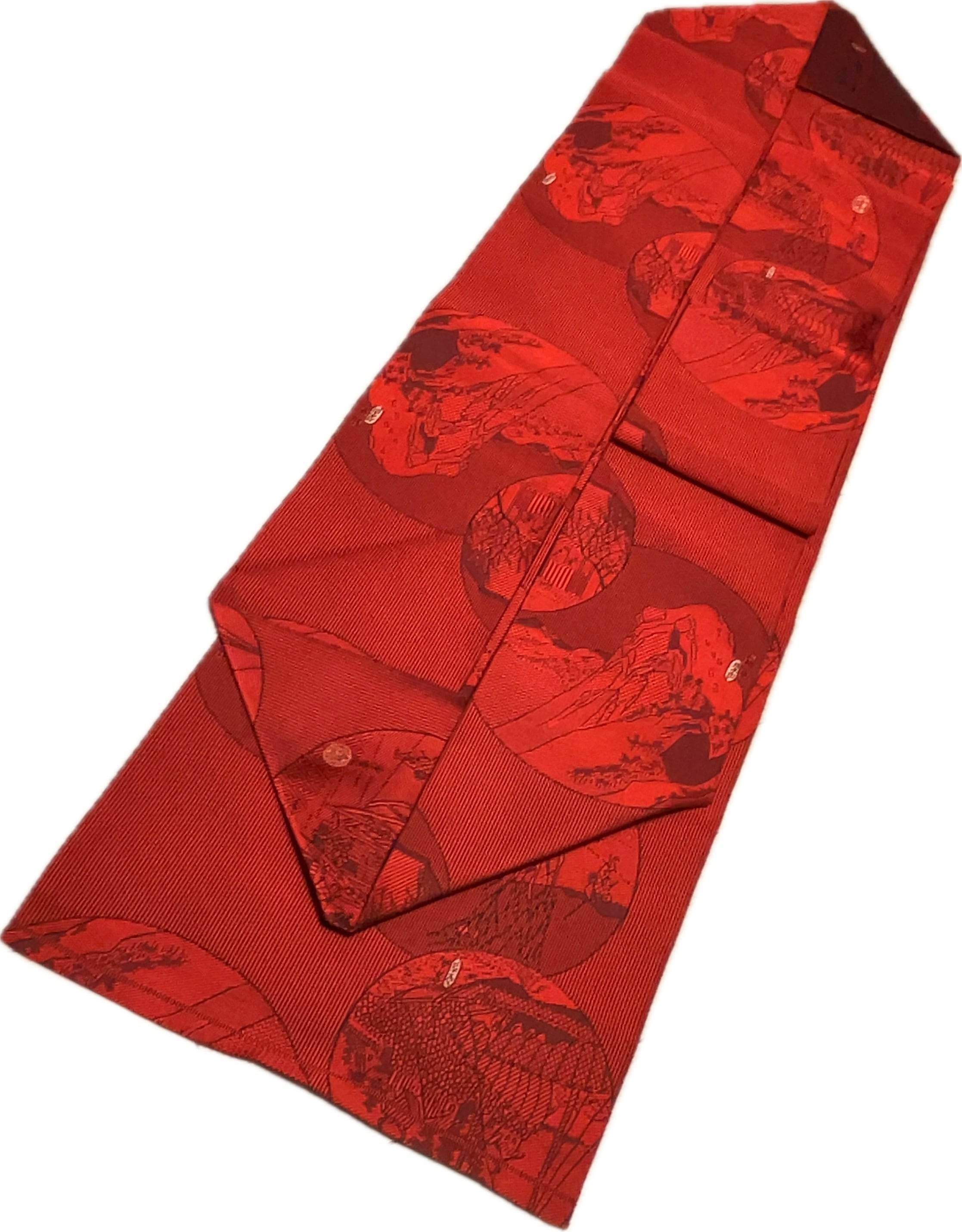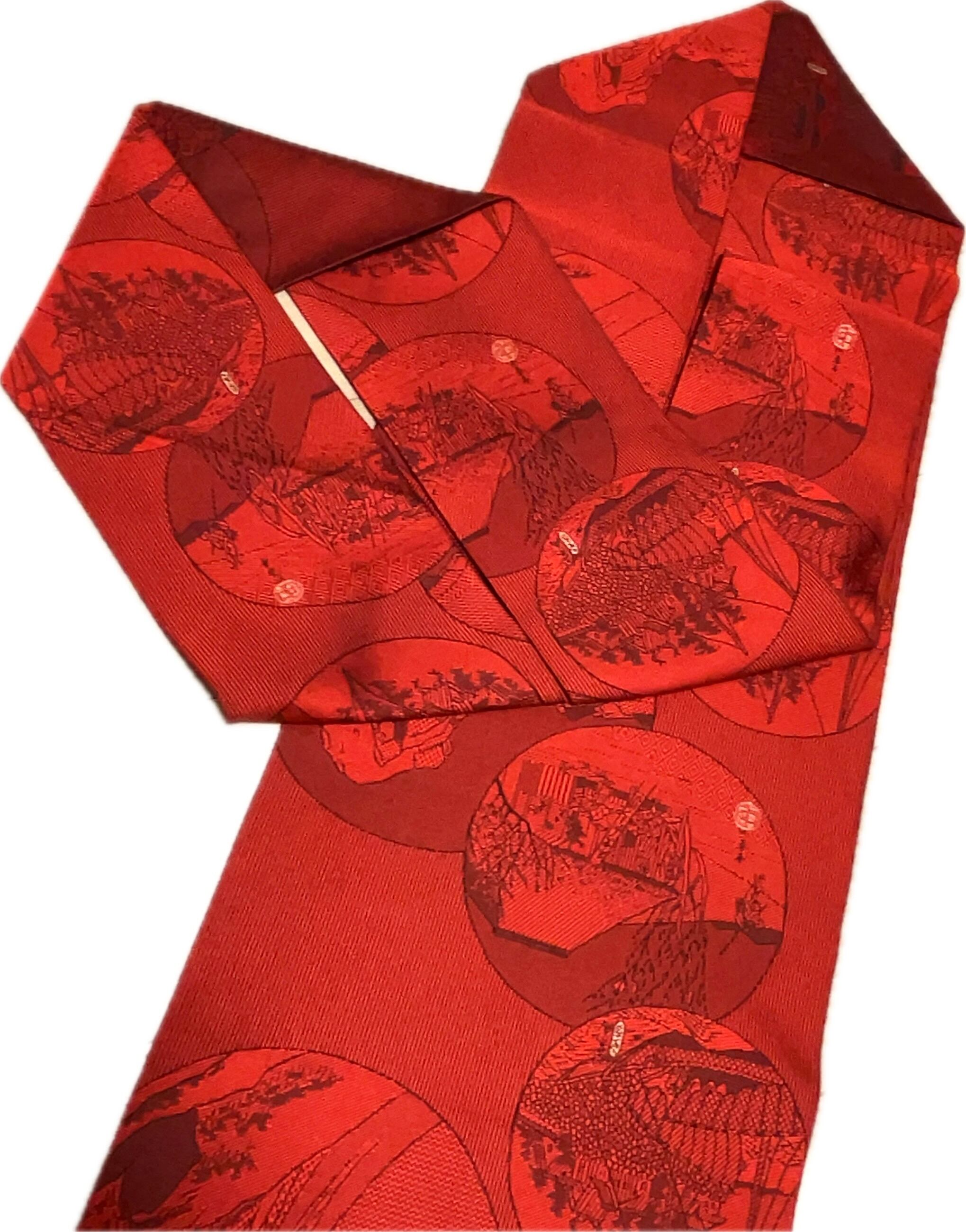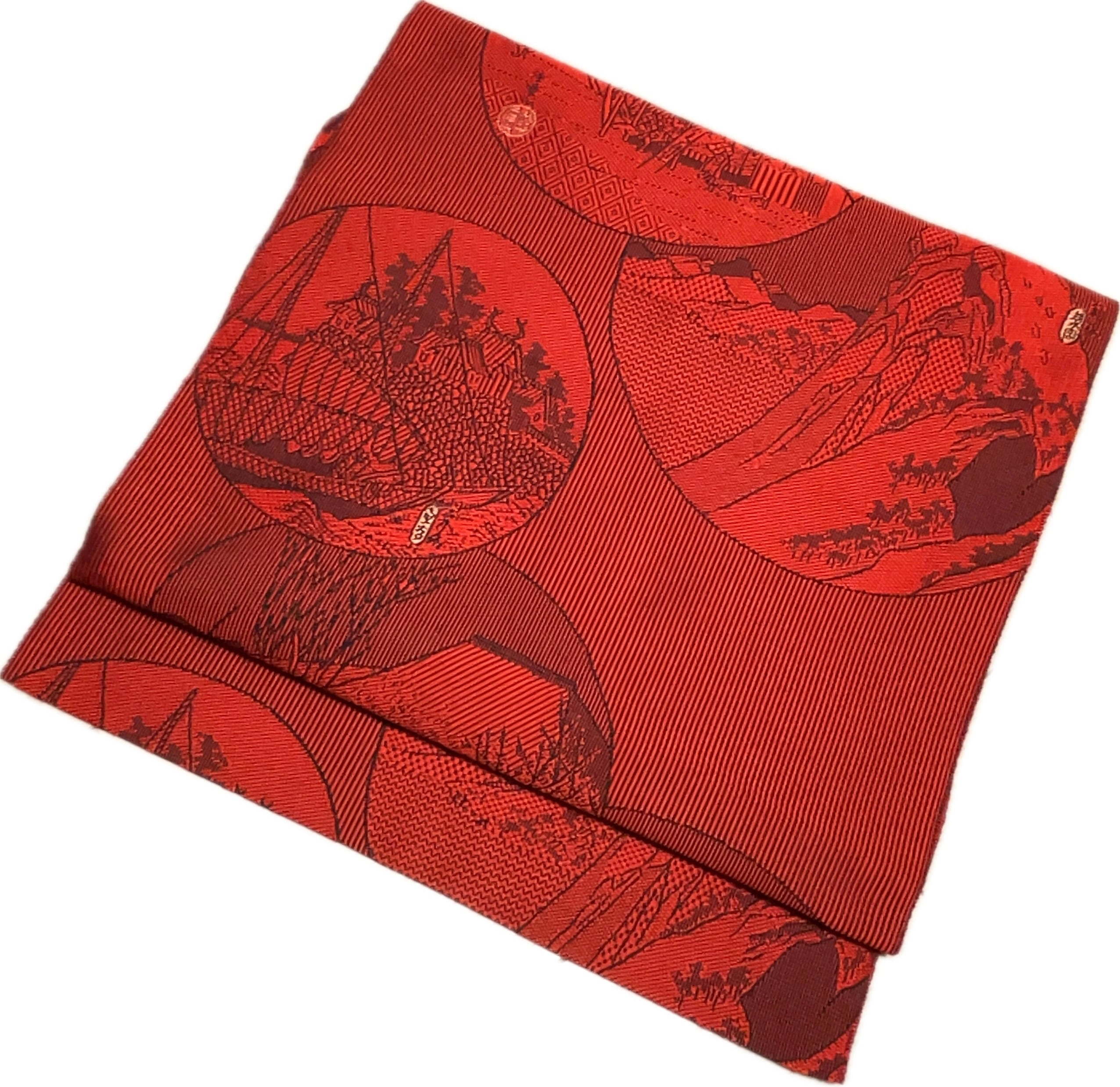 ZZ1209 名古屋帯 名古屋仕立て 赤 350cm ~初心者応援価格!!