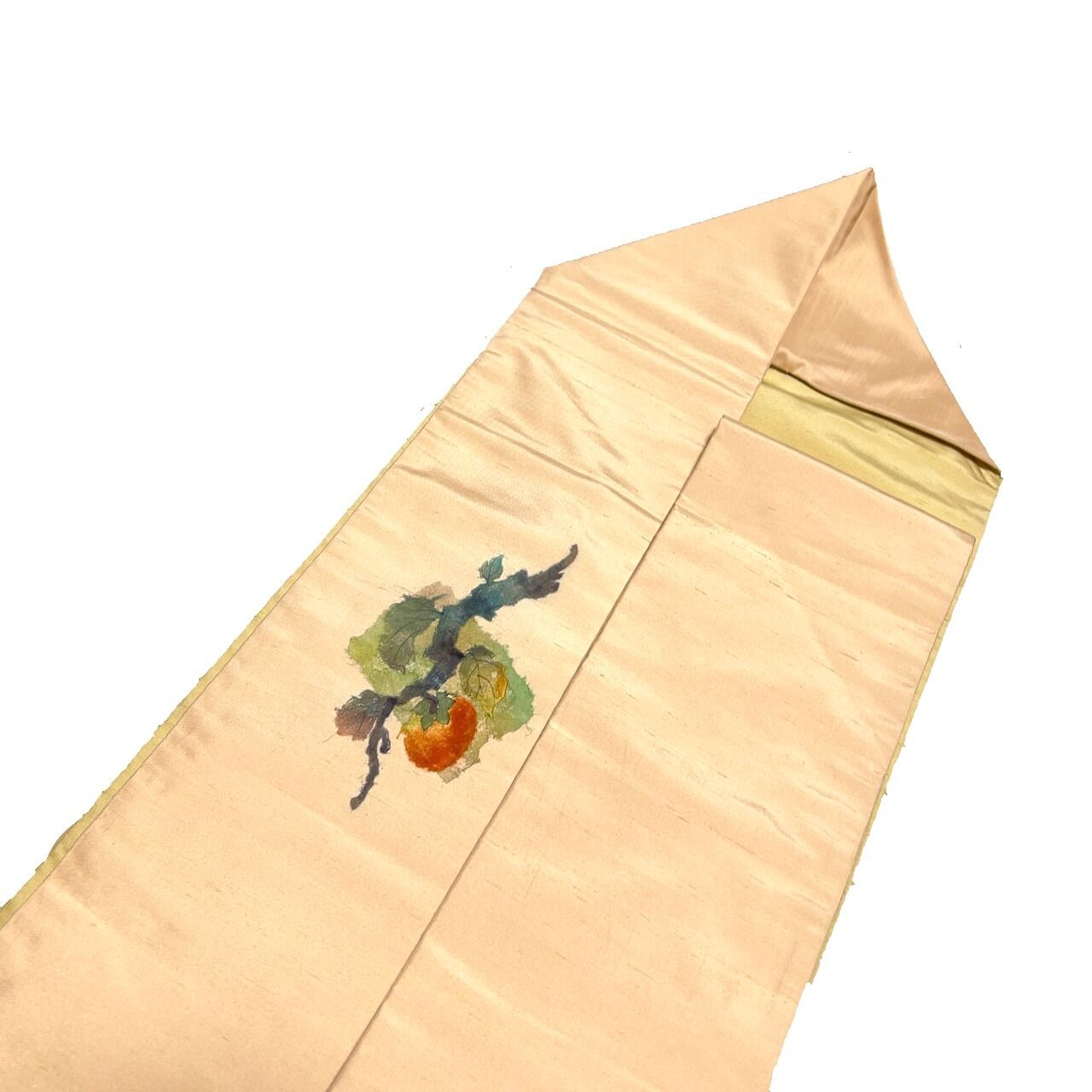 ZZ1217 袋帯 名古屋仕立て ピンク ベージュ 438cm 柿文様 初心者応援価格!!
