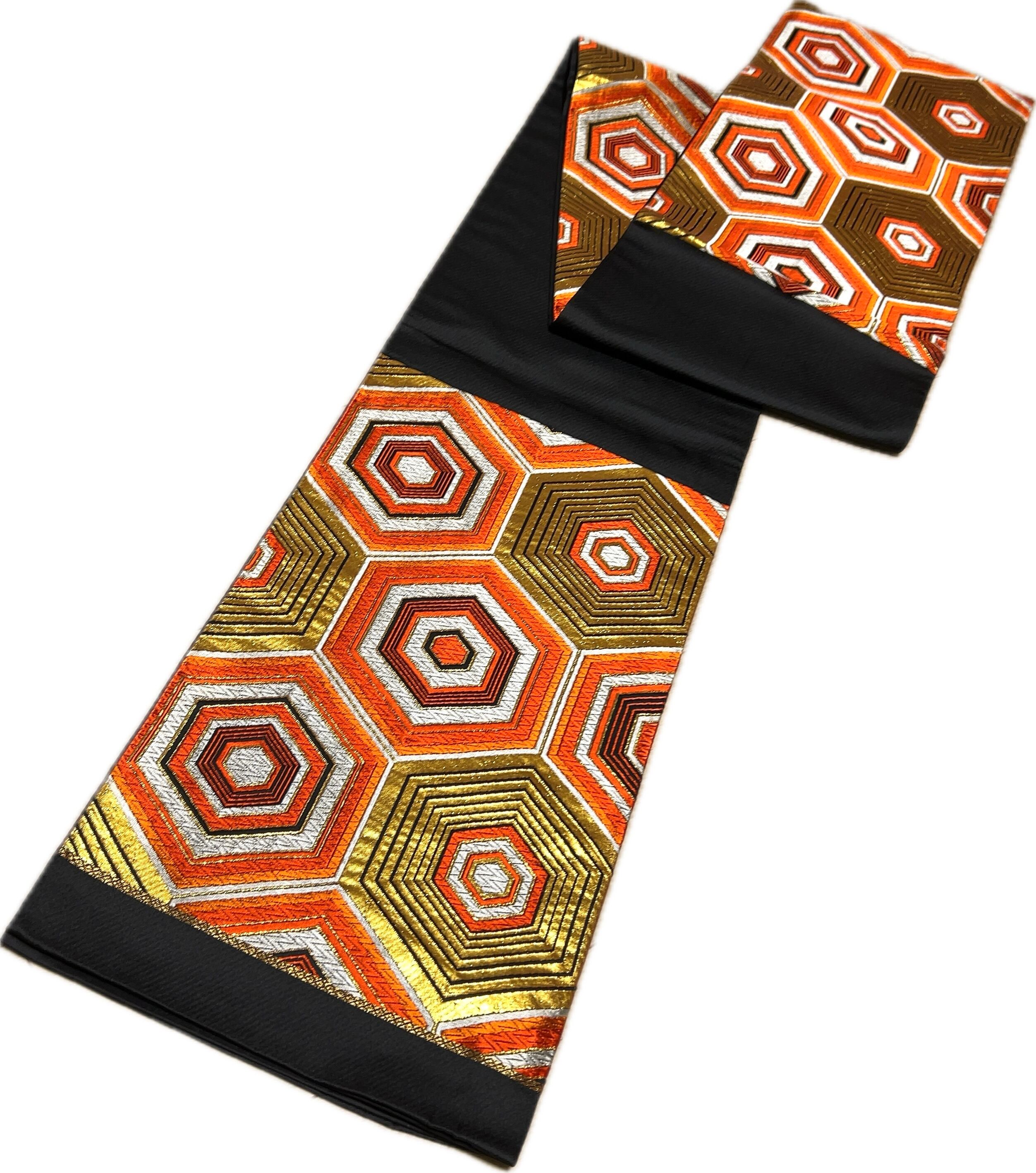 《12B24》袋帯 六通 ゴールド オレンジ 黒 428cm \初心者応援価格/ 訪問着・付下などに♪