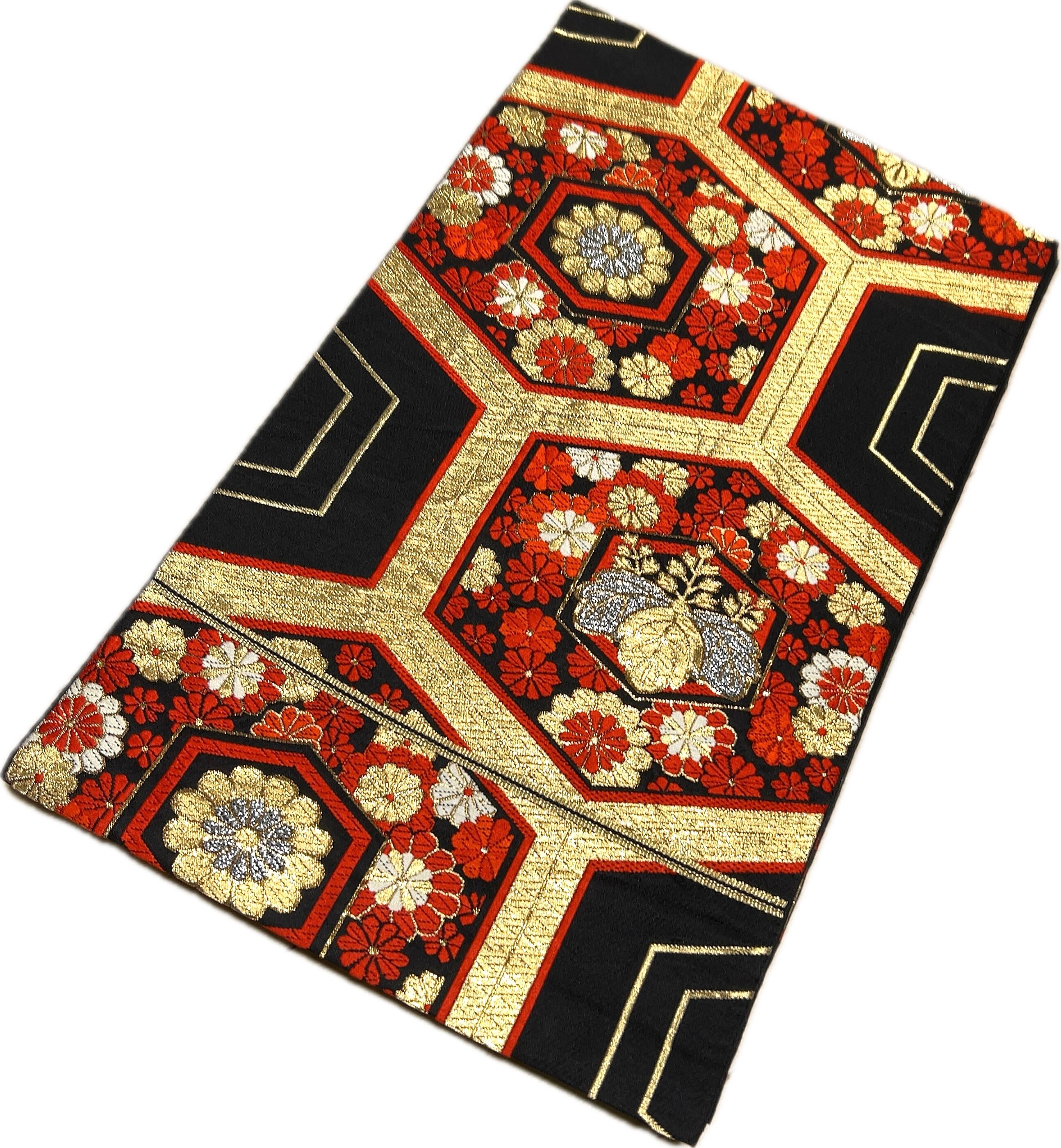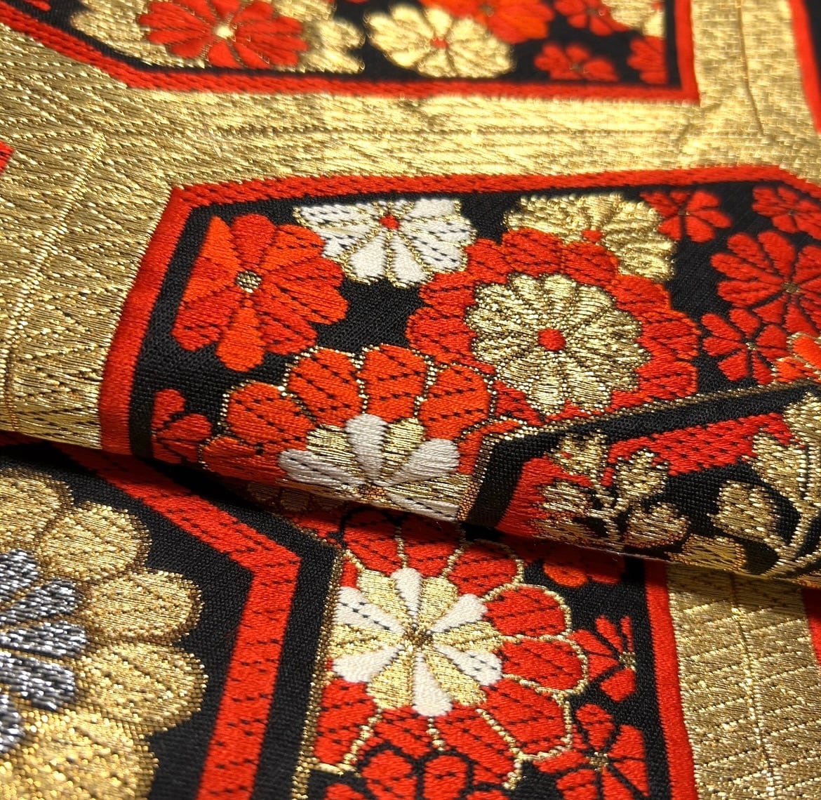 《12B29》袋帯 六通 ゴールド 赤 黒 416cm \初心者応援価格/ 訪問着・付下などに♪