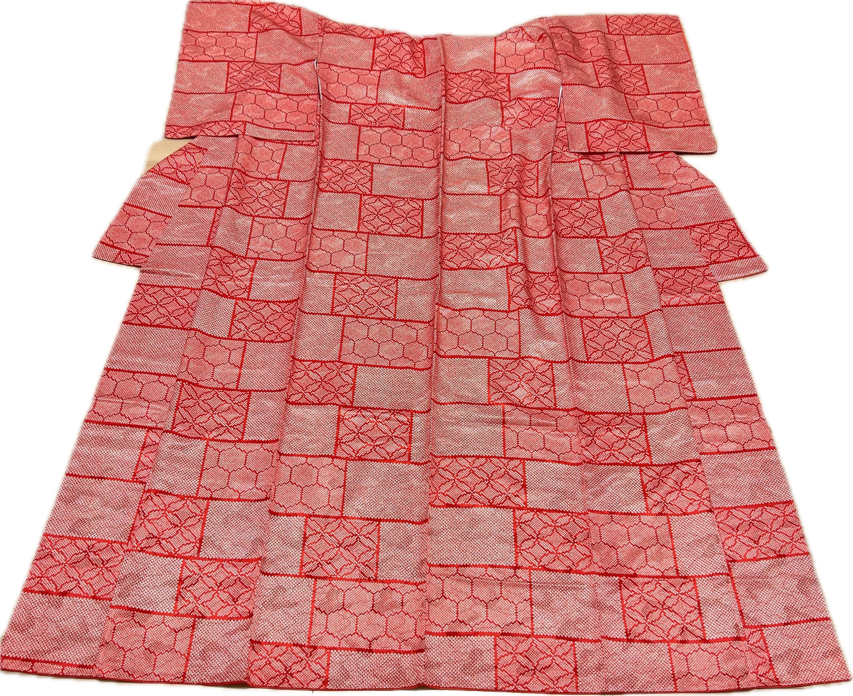 PP1231 洗える着物 小紋 袷 ポリ 赤 対象身長~ 166cm