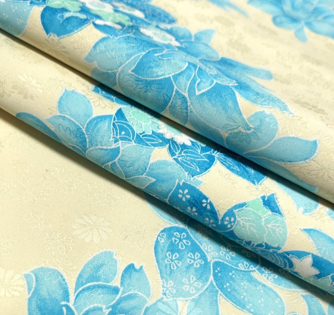 PP1234 洗える着物 小紋 袷 ポリ 生成 水色 対象身長~ 154cm