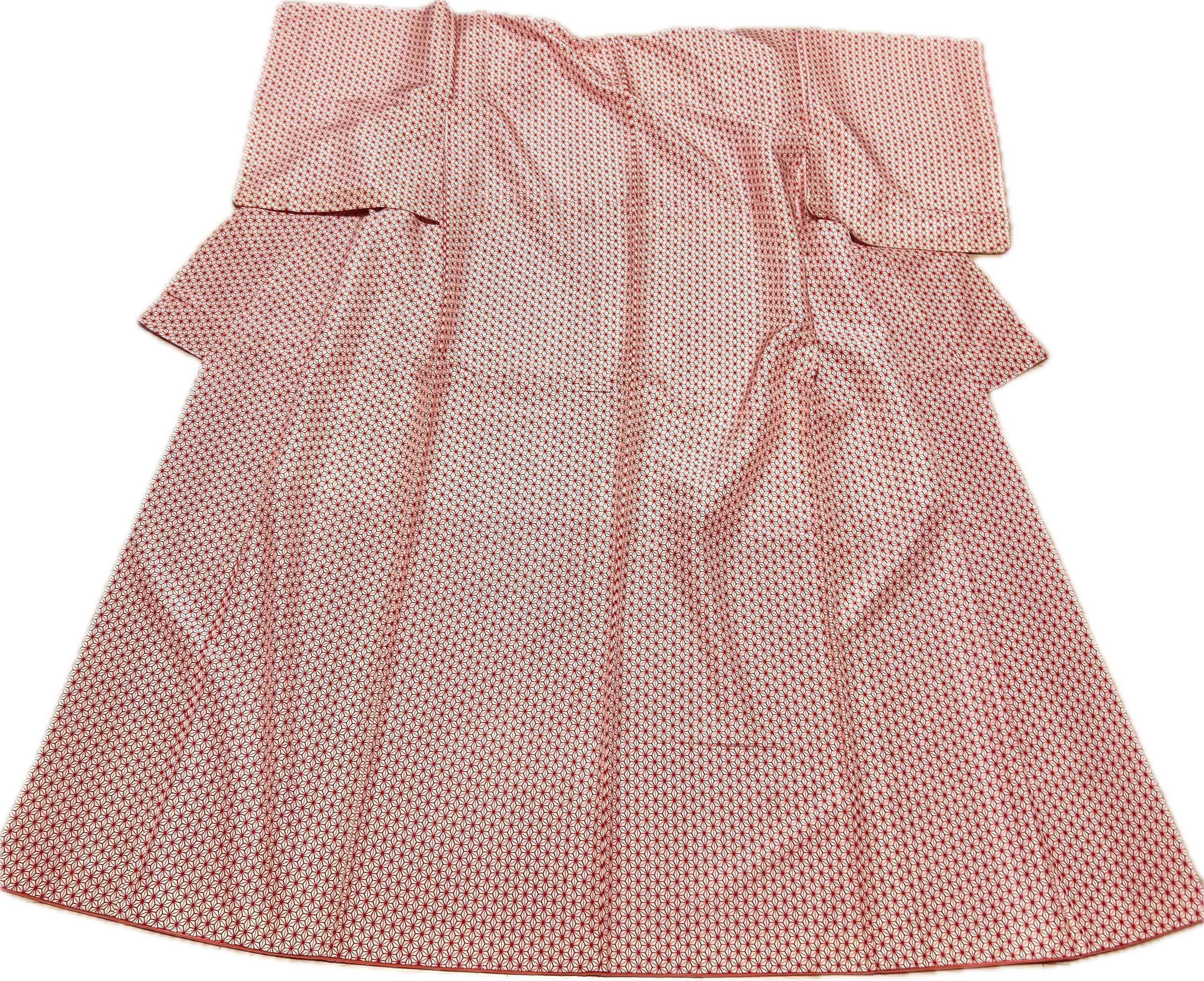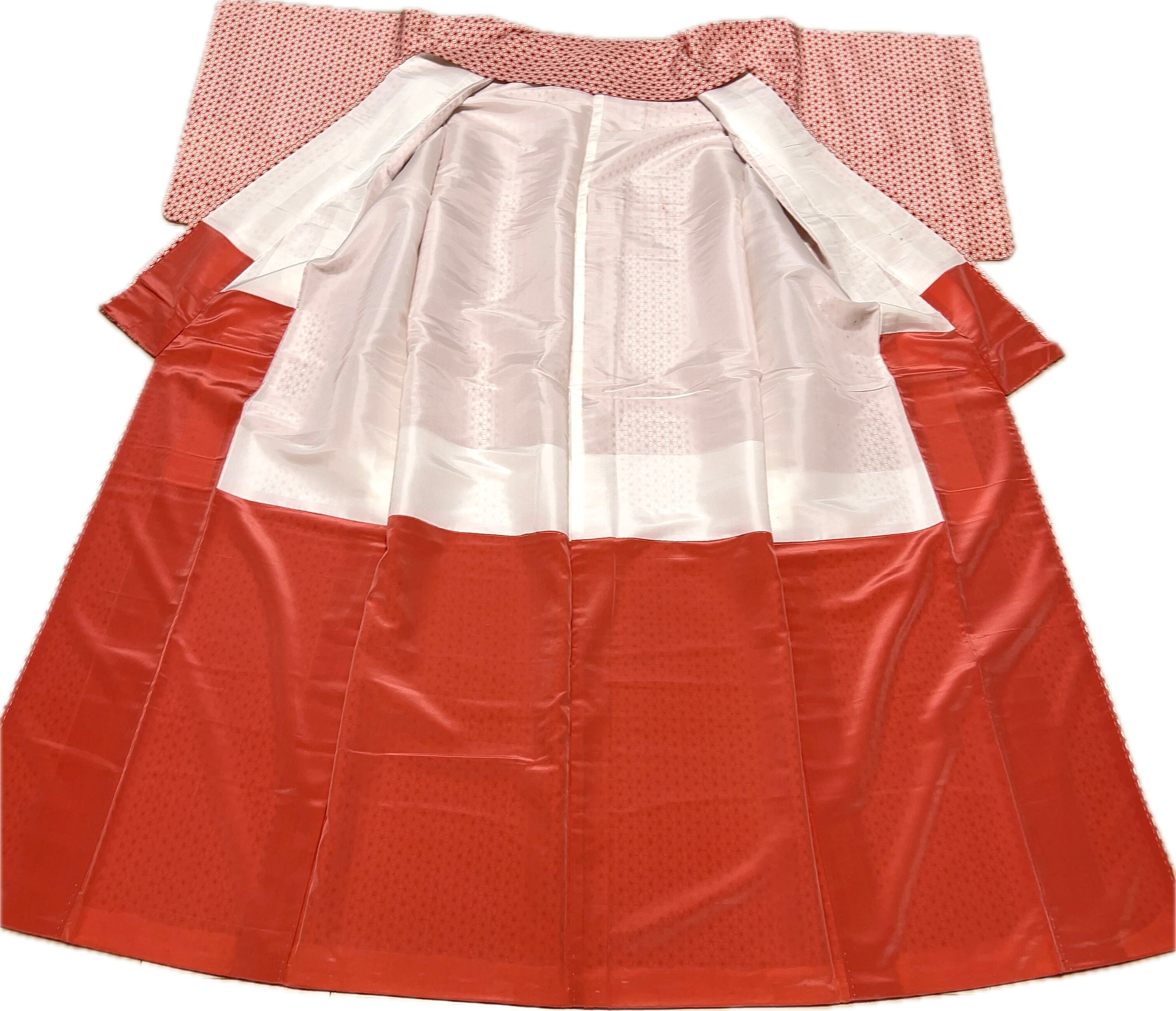 PP1241 洗える着物 小紋 袷 ポリ 赤 白 対象身長~154cm